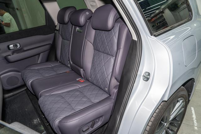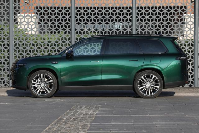 细节设计上,205mm 的最小离地间隙提升了复杂路况的通过性,1625mm 的前后轮距则增强了行驶稳定性。车身结构采用 5 门 5 座 SUV 布局,行李舱容积在常规状态下为 687L,后排座椅按 40:60 比例放倒后可扩展至 1663L,配合 50L 油箱容积,兼顾日常通勤与长途出行需求。隐藏式门把手、分段式不可开启全景天窗与 21 英寸铝合金轮毂(前胎规格 245/45 R21、后胎 255/45 R21)的搭配,既强化了车身的流线感,也以细节彰显质感,让整车在大气身形中透出精致设计语言。